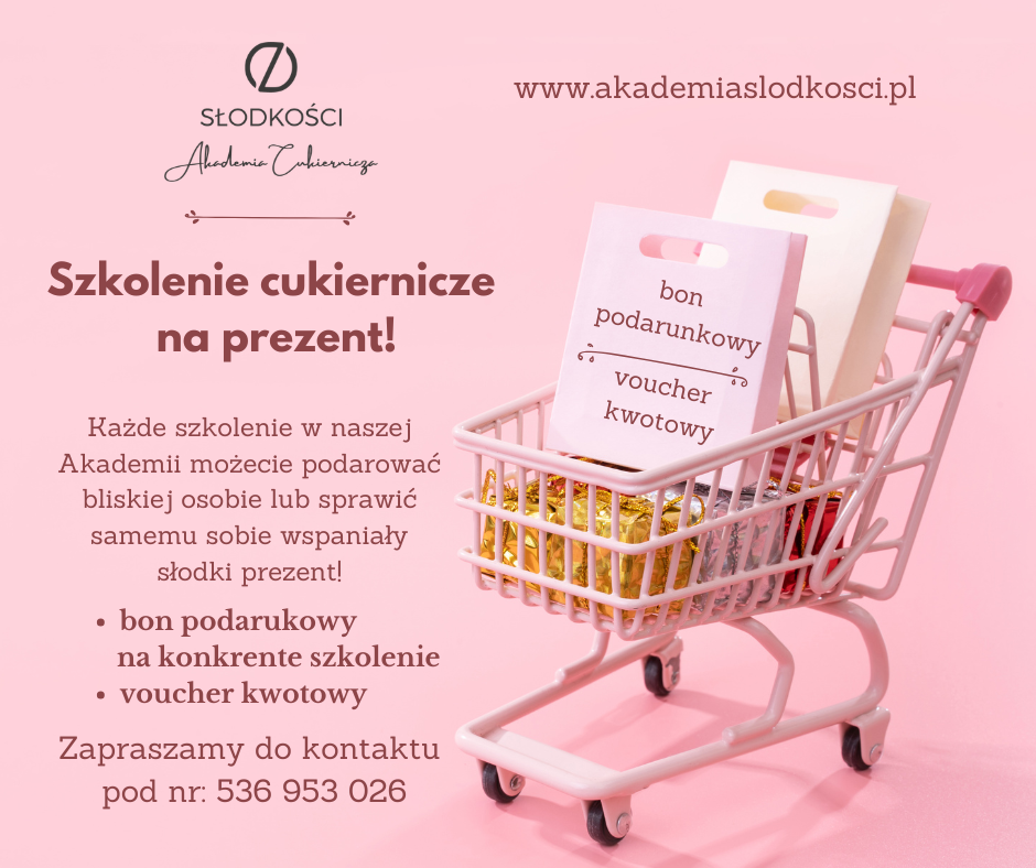 W przyjaznej atmosferze i na naszej profesjonalnej pracowni cukierniczej szkolimy każdego, kto ma serce do słodkości! W naszych szkoleniach wziąć udział może zawodowy cukiernik, domowy piekarz i każdy inny łasuch, który spełnia swoje słodkie marzenia!