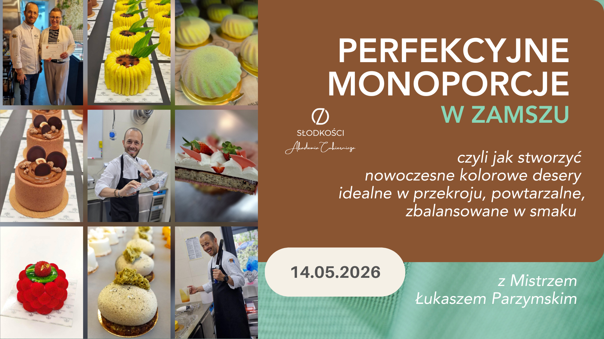 To wspaniałe, precyzyjne i obłędne (w smaku!) szkolenie poprowadzi nie kto inny, jak Mistrz Łukasz Parzymski, który o czekoladzie i monoporcjach wie już chyba wszystko! Profesjonalnie i zawodowo, całym sercem i duszą zajmuje się nimi ponad 28 lat! Szkolenie poprowadzone zostanie krok po kroku. Wszystkie warstwy aż 5 różnych monodeserów przygotowane zostaną przez Kursantów, pod nadzorem Mistrza, od zupełnych podstaw.