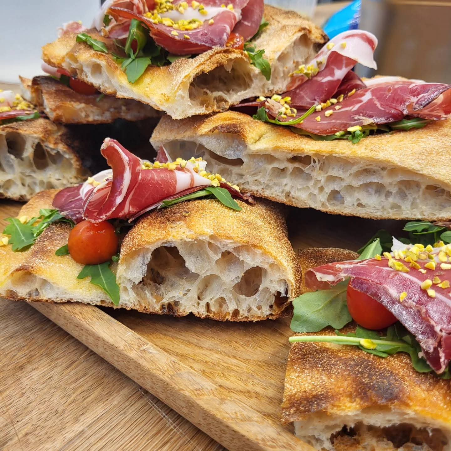 2. Focaccia/ mortadella/ mozzarella/ Pistacje